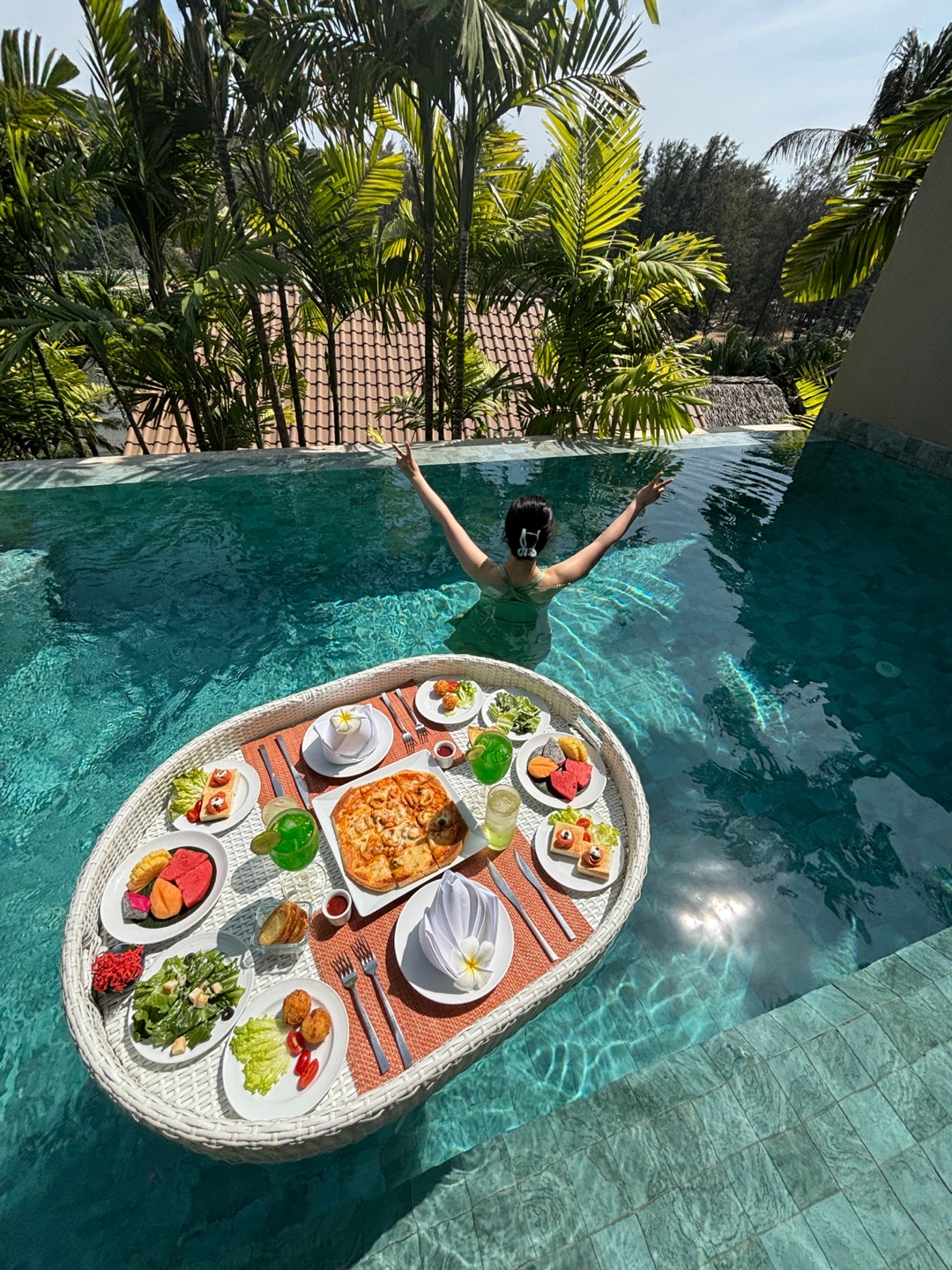 넷째 날은 올 인클루시브 데이였는데 풀빌라 부대시설도 즐기고 아침, 점심, 저녁도 주고 음료쿠폰 6잔도 챙겨주어 편안하게 즐길 수 있었습니다. 특히 점심은 방으로 배달해주었는데 플로팅 런치를 먹을 수 있어 추억도 생기고 편히 밥을 먹을 수 있었습니다. 또한 여행사에서 타이마사지 1회 더 추가해주어 몸도 충분히 휴식할 수 있었습니다.